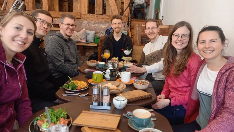 Sabine berichtet: Ursprünglich war geplant, vom Parkplatz Freibad aus zunächst zur Carl-Schöpf-Hütte zu gehen und dort einen kleinen Snack zu essen. Auf dem Weg dorthin stellte sich heraus, dass die Zimtschnecken, die ebenfalls in die Hütte gebracht werden sollten, nicht geholt werden konnten. Sie mussten dringend aus der Sauna befreit werden, in der sie lagen. Daraufhin wurde das Ziel geändert und die Zimtschneckenrettung wurde zum neuen Ziel. Der Snack wurde daher auf der Terasse gegessen, die viel schöner und gemütlicher war, wie die angedachte Carl-Schöpf-Hütte. Nach der Stärkung ging es weiter zum Steinbruch Schöllbronn, wo uns bereits das warme Chili erwartete. Bei dem kalt-feuchten Wetter war die warme Mahlzeit genau das Richtige, bevor es weiter zurück nach Ettlingen ging.