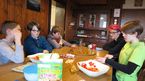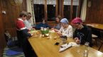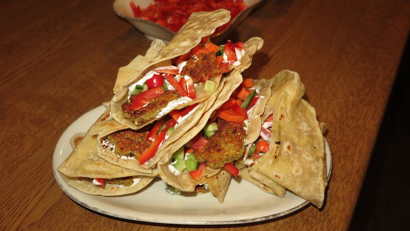 Später kochten wir dann wieder Abendessen. Für Samstagabend hatten wir uns Falafel Wraps ausgedacht. Hierzu musste wieder einiges an Gemüse geschnippelt werden, Falafel in Formen gebracht und gebraten werden und der Teig für die Wraps gemacht und danach auch noch gebraten werden. Als wir fertig waren gab es köstliche Wraps und zusammen mit dem Kuchen waren wir alle sehr gut satt.