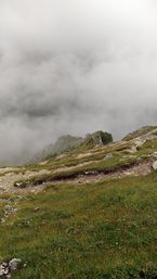 Als wir am nächsten Tag aufstanden hatte der Wetterbericht leider recht behalten und das Wetter war kein bisschen besser als am Vortag. Somit beschlossen wir, dass wir das mit dem Klettern sein lassen und dafür auf den Aggenstein wandern. Der Nebel wurde sogar etwas dünner und man konnte doch tatsächlich etwas mehr als nichts sehen. Vom Aggenstein aus liefen wir dann weiter zum Breitenberg, nach einer kurzen Pause liefen wir weiter wieder Richtung Hütte. Den Nachmittag verbrachten wir auf der Hütte.