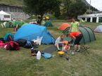 Dieses Jahr sind wir nur zu viert weg gefahren. Daher haben wir uns mal ein teureres Ziel ausgesucht. Es ging in die Schweiz nach Zermatt. Hier hatten wir einen kleinen Campingplatz ganz in unserem Stil. Einfach eine Wiese mit einem kleinen Sanitätshaus. Alles in allem ein kleiner gut überschaubarer Platz. An unserem Anreisetag, Montag, haben wir uns noch Zermatt angeschaut und essen gekocht, wie immer sehr gesund. Abends hat es dann wie jeden Sommer angefangen zu regnen…