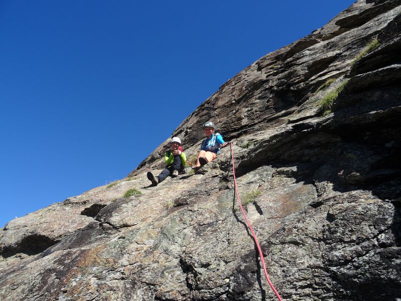 Am Mittwochmorgen sind wir dann bei super Wetter aufgewacht. Da hieß es dann für uns: Klettersachen in den Rucksack und los geht’s! Gesagt getan. Damit wir nicht schon komplett erledigt bei den Felsen ankommen, sind wir mit der Gornergrat Bahn auf den Berg gefahren… Eine zwar teure aber sehr lohnende Fahrt Der Ausblick war Hammer! an der Station Rotenboden sind ausgestiegen und zur „Gornerfluh“ gelaufen. Hier haben wir dann zwei verschiedene Mehrseillängen geklettert. Dabei hatten wir super Panorama mit Ausblick aufs Matterhorn. die Kletterei war nicht zu schwer und so konnte man das Klettern einfach super genießen! abends waren wir alle gut müde und sind früh ins Bett gegangen.